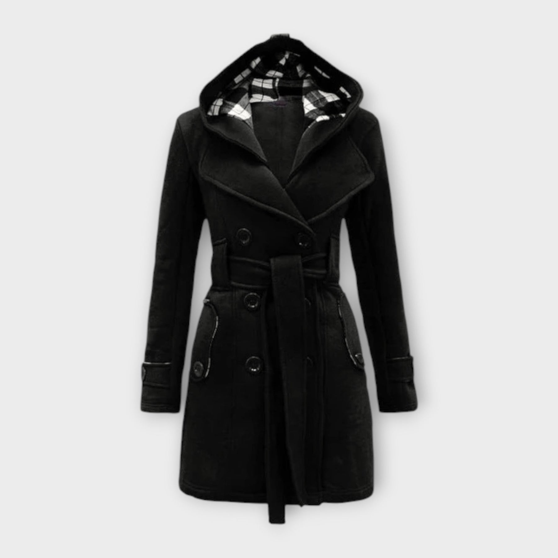 Wrap yourself in timeless sophistication with the Evelyn winter coat. Designed for the modern woman, it offers a graceful silhouette with a belted waist and elegant lapels, while the hooded lining ensures you stay snug and stylish during chilly days.