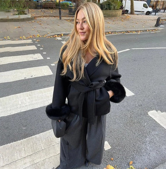 Isabella - Abrigo de lana con detalle de piel en los puños